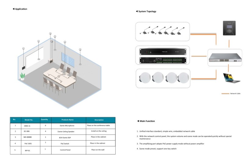 o ការភ្ជាប់ជាមួយប្រព័ន្ធ BMS: ភ្ជាប់ជាមួយប្រព័ន្ធគ្រប់គ្រងការកសាង (ដូចជា Crestron) តាមរយៈ Dante API ដើម្បីដឹងថាការចាក់ផ្សាយការជូនដំណឹងបានបង្ខំឱ្យចាក់ផ្សាយដោយបង្ខំ។
